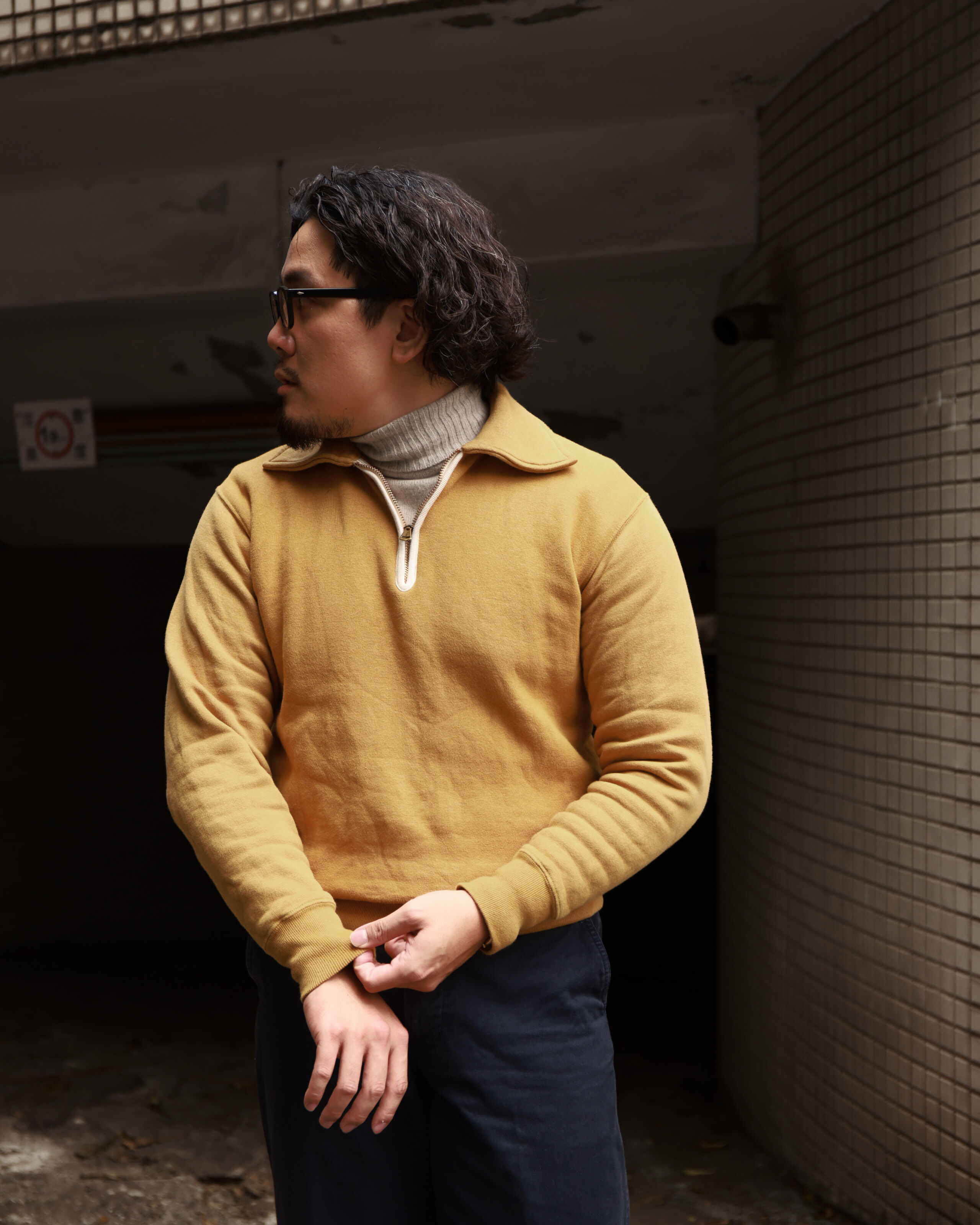 其中,Half Zip Sweater 便是這段演變中的重要分支——源自1930年代運動服設計,運動員需快速調節體溫的實用考量,製作者因應開發出半拉鍊領口。近年因「三角區」搭配風潮,讓這款經典再度回到冬季穿搭焦點。