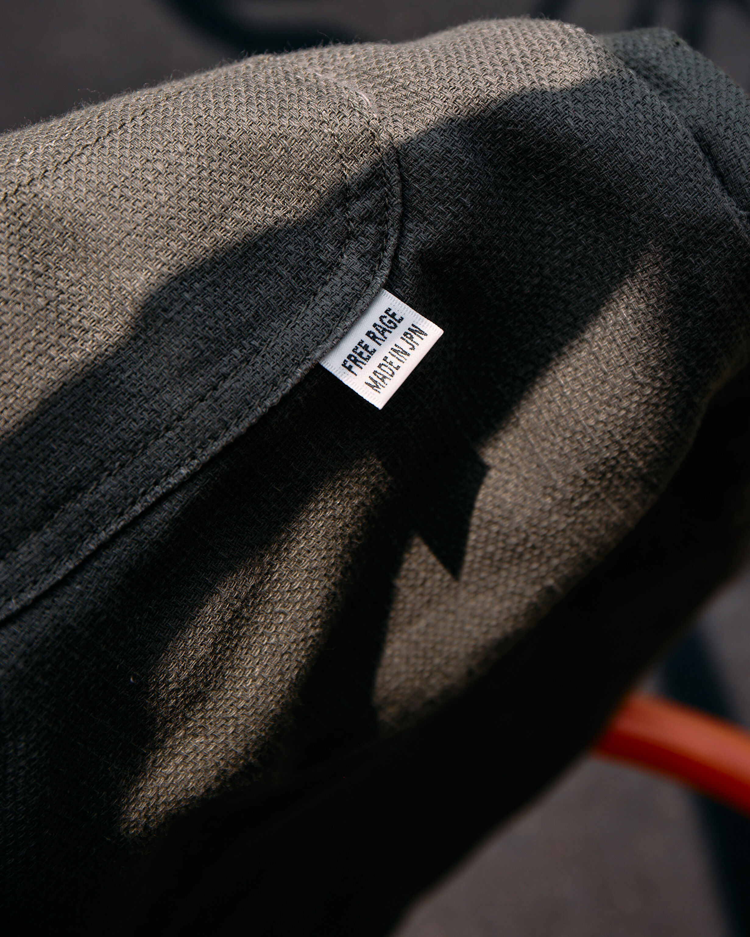 ・布料 選用輕磅數的 6.5oz 棉麻混織 Dobby 面料(棉 90%・麻 10%)。相較 Free Rage 慣用的 10oz 純棉丹寧或卡其,大幅減輕厚度,帶來極佳的透氣性與自然垂墜感。表面帶有細微不規則紋理,觸感細緻平滑,兼具日式質感與夏季舒適度。